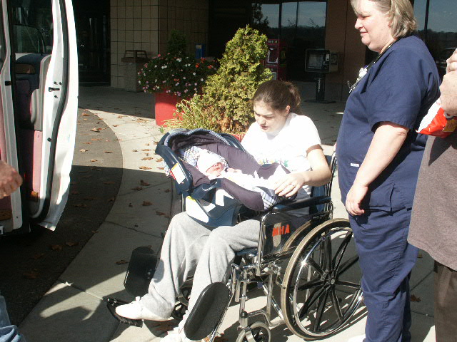Mommy and Daddy putting Kaylee in the van